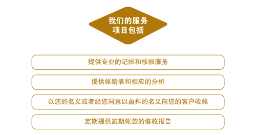 盈诚的应收账款外包服务能够有效地解决您的问题。您可以把全部应收账款或者超过一定期限的应收账款全部委托给我们帮您管理。
